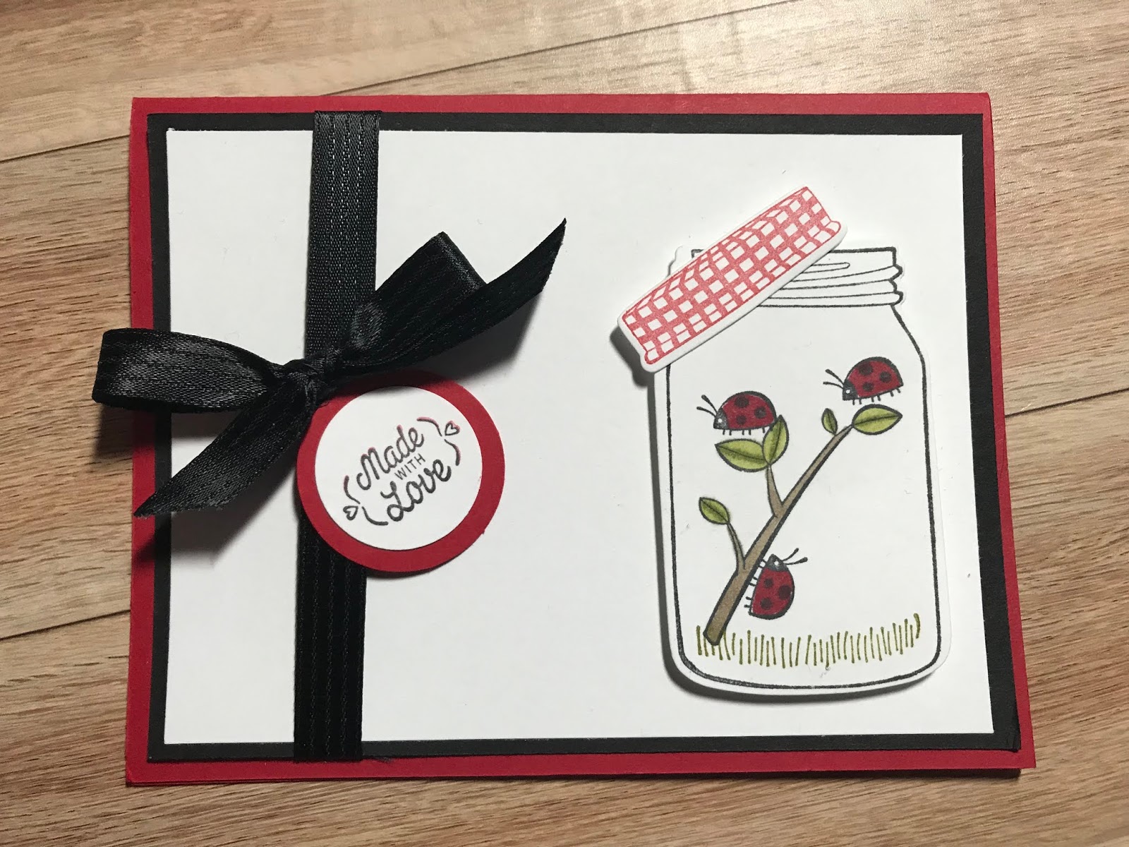 I also love a black, white and red theme. I think perfect timing for back to school. Perfect for some lady bugs in a jar and any opportunity to use my Jar of Love stampset and Everyday Jar framelites AND my Stampin' Blends - yes please!